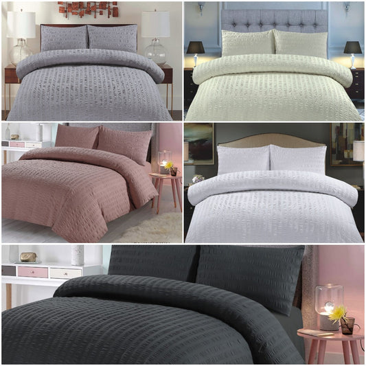 Amazing Premium Quality Seersucker Duvet Quilt Cover Set with Plain Dyed Matching-colour fitted sheet and Pillowcase