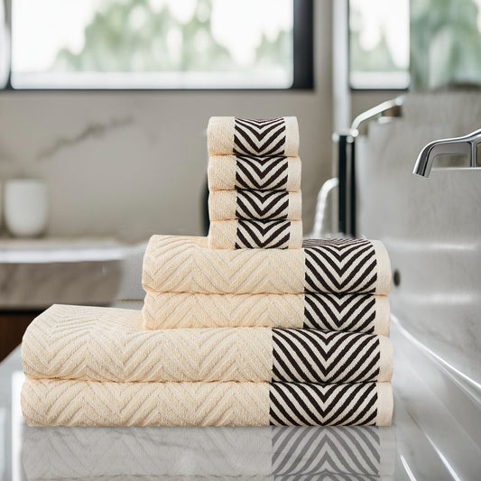 Zig Zag Style Towels 8-Piece Bale Set - Soft, Plush, and Fluffy 100% Woven Cotton - Versatile Sizes - Elegant Design - Hand, Face and Bath Towels