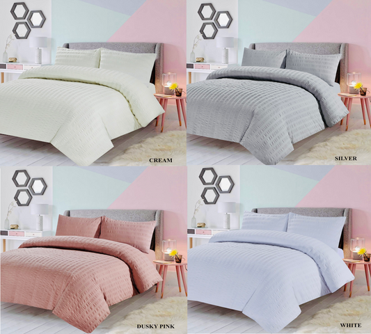 Amazing Premium Quality Seersucker Duvet Quilt Cover Set with Plain Dyed Matching-colour fitted sheet and Pillowcase